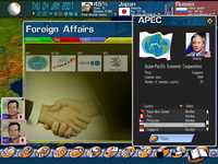 More than 50 international organisations that play a role throughout the game, including: the UN organisations (UNO, IMF, Worldbank), major organisations (NATO, G7, OPEC, etc), economic organisations (EU, CIS, MERCOSUR, NAFTA, Arab League, etc), major NGOs (international aid, human rights, environment, etc)